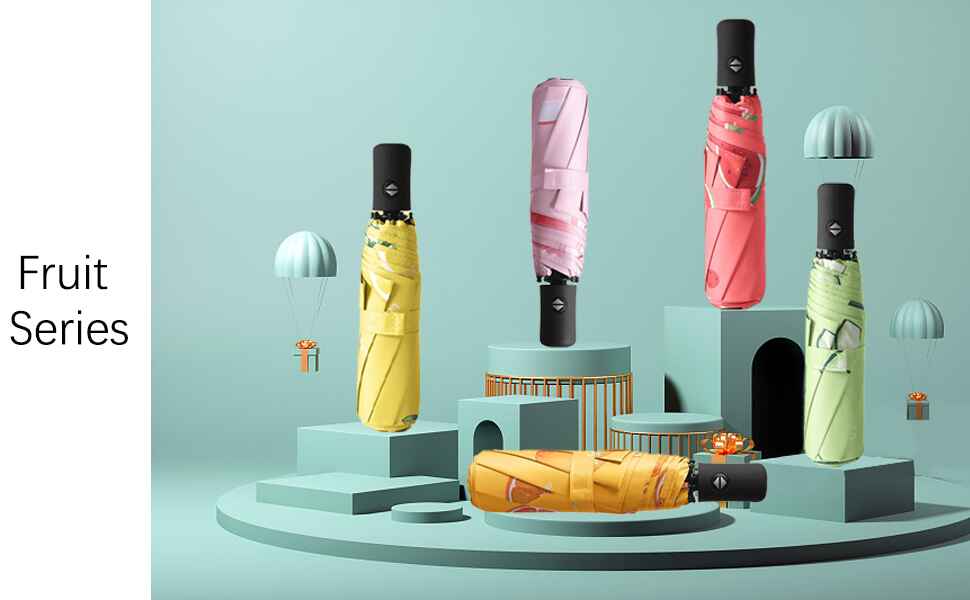 The Fruits Series Automatic Folding Umbrella combines fruit-themed designs with strong windproof construction and UV protection. Compact yet durable, it fits easily into bags, making it ideal for year-round use—rain or shine!